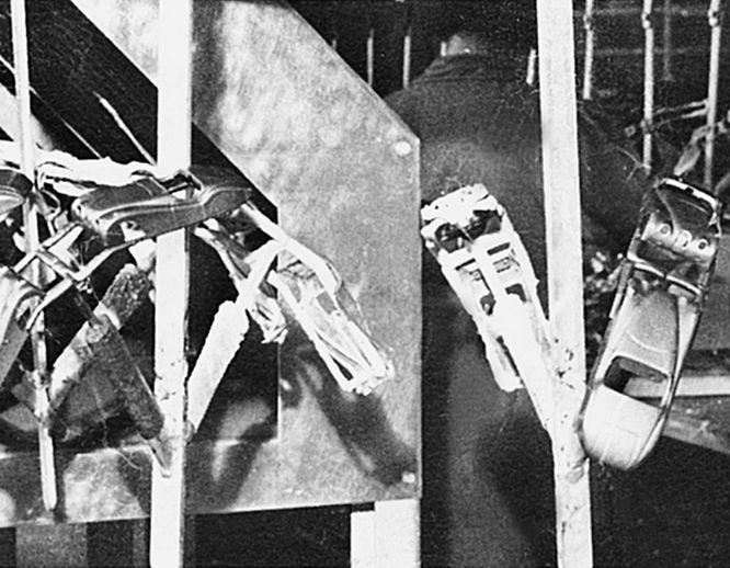 c. Painted Jaguar XK120 bodies on a conveyor to the stoving ovens at the Havant works.