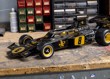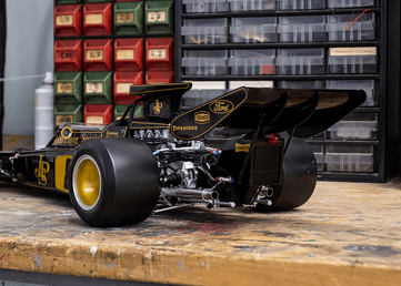 The Lotus 72 is seen by many to be the most beautiful, innovative, and iconic Formula One racing car of the 1970s. Colin Chapman's revolutionary idea of moving the radiator from the front of the car to a pair of sidepods allowed a sweeping change in the looks, handling and ability of Formula One cars. Firstly in Gold Leaf colors and then in the stunning black and gold of JPS, the Lotus 72 swept all before it in the early 1970s, proving to be the class of the field.