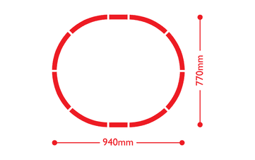 The Hornby Santa's Express Christmas Train Set includes a OO Gauge (1:76 Scale) railway oval track layout designed to fit a space of 92cm x 77cm.
